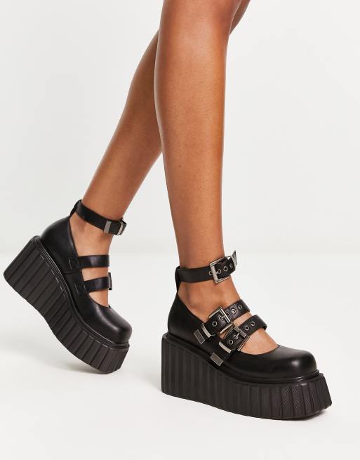 Lamoda double buckle creeper sole wedge shoe in black exclusive to ASOS